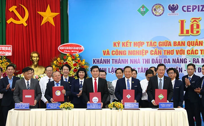 Ðại diện lãnh đạo Trường Ðại học Kỹ Thuật - Công nghệ Cần Thơ ký kết hợp tác với Ban quản lý các khu chế xuất và công nghiệp Cần Thơ và các trường đại học, cao đẳng.