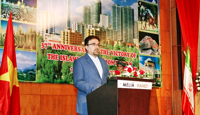Tại buổi lễ, thay mặt Chính phủ và nhân dân Việt Nam, Thứ trưởng Bộ Ngoại giao Vũ Hồng Nam gửi lời chúc tốt đẹp nhất đến Chính phủ và nhân dân Iran nhân dịp kỷ niệm 37 năm Quốc khánh; bày tỏ vui mừng trước những thành tựu nổi bật mà nhân dân Iran đã đạt được trong suốt 37 năm qua. “Sau thắng lợi cuộc cách mạng năm 1979, với nghị lực bền bỉ và tinh thần sáng tạo, nhân dân Iran đã vượt qua nhiều khó khăn, thử thách và đạt được những thành tựu nổi bật, đưa Iran trở thành nền kinh tế lớn và quốc gia có vai trò quan trọng trong khu vực và trên thế giới. Đặc biệt, việc đạt được thỏa thuận toàn diện về vấn đề hạt nhân đã đánh dấu bước tiến mới, tích cực trong lịch sử Iran. Nhân dân Việt Nam luôn quan tâm theo dõi và vui mừng nhận thấy Iran đã và đang bước vào giai đoạn mới của hội nhập và phát triển. Chúng tôi tin tưởng rằng với quyết tâm và tiềm năng sẵn có, nhân dân Iran sẽ tiếp tục đạt được nhiều thành tựu mới, to lớn hơn nữa, đưa đất nước Iran phát triển tương xứng với vai trò và vị thế lịch sử của mình”, Thứ trưởng Vũ Hồng Nam nói.