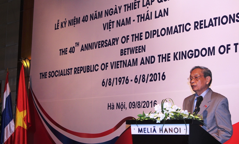 Phát biểu tại buổi Lễ, Chủ tịch Hội hữu nghị Việt Nam – Thái Lan Tạ Quang Ngọc nhấn mạnh, ngày 6/8/1976, Việt Nam và Thái Lan chính thức thiết lập quan hệ ngoại giao. Đây là cơ sở và tiền đề quan trọng cho việc thúc đẩy mối quan hệ hữu nghị, hợp tác nhiều mặt giữa Việt Nam và Thái Lan. Trong suốt 40 năm qua kể từ ngày hai nước thiết lập quan hệ ngoại giao, đặc biệt là những năm gần đây, quan hệ hữu nghị và hợp tác giữa Việt Nam và Thái Lan không ngừng được củng cố và phát triển trên tất cả các lĩnh vực. Lãnh đạo cấp cao hai nước thường xuyên có các chuyến thăm lẫn nhau. Đặc biệt, trong chuyến thăm Thái Lan của Tổng Bí thư Nguyễn Phú Trọng vào tháng 6/2013, lãnh đạo hai nước đã chính thức nâng cấp quan hệ Việt Nam – Thái Lan lên tầm Đối tác chiến lược… Thông qua các chuyến thăm, lãnh đạo cấp cao hai nước đã thảo luận những phương hướng và biện pháp nhằm khai thác tốt tiềm năng sẵn có của hai nước, mở rộng hợp tác trên nhiều lĩnh vực mà hai bên có thế mạnh. Hai bên đã ký kết Chương trình Hành động triển khai quan hệ Đối tác chiến lược giai đoạn 2014 – 2018…