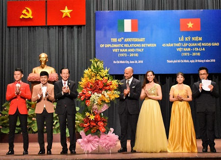 Sáng 20/6, tại TP. Hồ Chí Minh, UBND TP. Hồ Chí Minh đã tổ chức Lễ kỷ niệm 45 năm thiết lập quan hệ ngoại giao Việt Nam - Italia (1973-2018). Phó Chủ tịch Thường trực UBND Thành phố Lê Thanh Liêm, Tổng lãnh sự Italia tại TP. Hồ Chí Minh Đan-Tê Bờ-Ran-Đi tới dự.