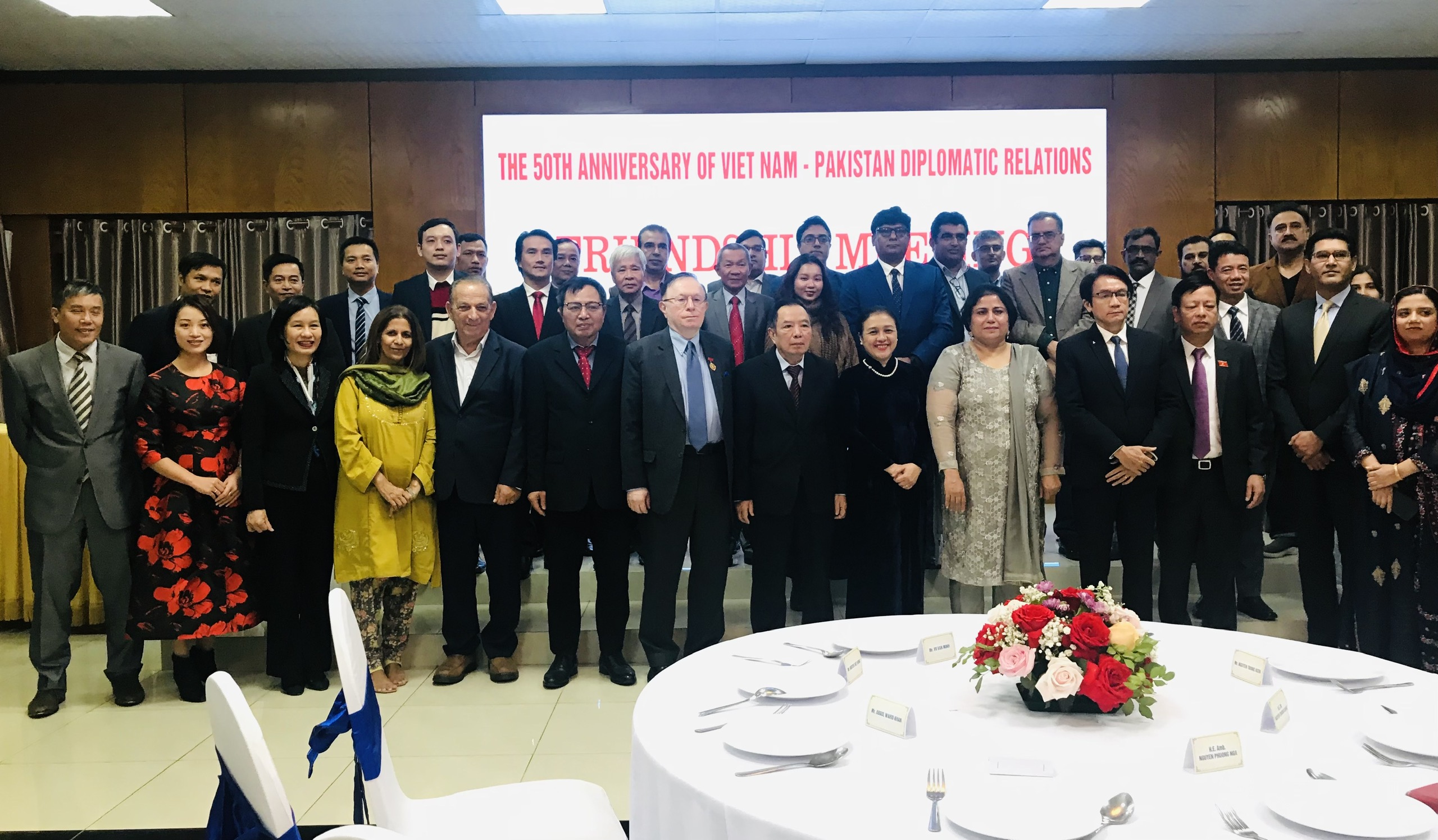 | Các đại biểu tham dự Lễ Kỷ niệm 50 năm thiết lập quan hệ ngoại giao Việt Nam – Pakistan cùng chụp ảnh lưu niệm. |
