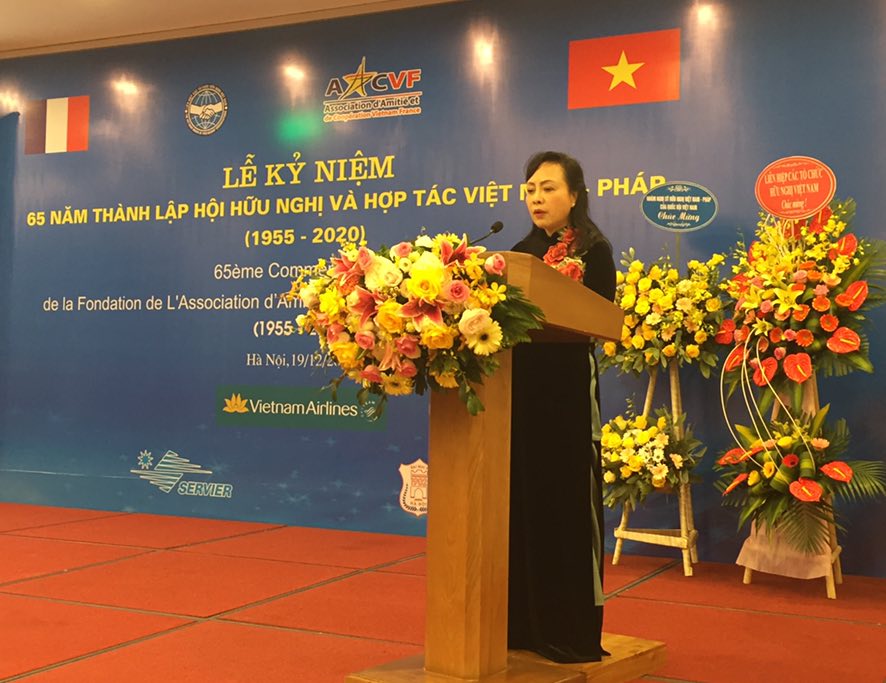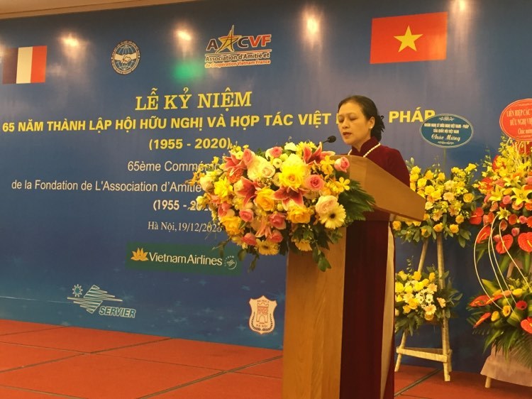 Cũng tại lễ kỷ niệm, bà Nguyễn Phương Nga, Chủ tịch Liên hiệp các tổ chức Hữu nghị Việt Nam cho biết, Lễ kỷ niệm 65 năm thành lập Hội Hữu nghị và Hợp tác Việt Nam – Pháp là dịp để ôn lại chặng đường 65 năm với những dấu mốc lịch sử quan trọng trong quan hệ giữa Việt Nam và Cộng hòa Pháp. Ngày 02/7/1955, Hồ Chủ tịch đã chỉ đạo thành lập Hội hữu nghị Việt - Pháp, tổ chức đối ngoại nhân dân với nhiệm vụ tham gia vào công tác vận động nhân dân Pháp đoàn kết và ủng hộ nhân dân Việt Nam trong sự nghiệp xây dựng lại đất nước sau thắng lợi của cuộc kháng chiến lần thứ nhất chống thực dân Pháp.