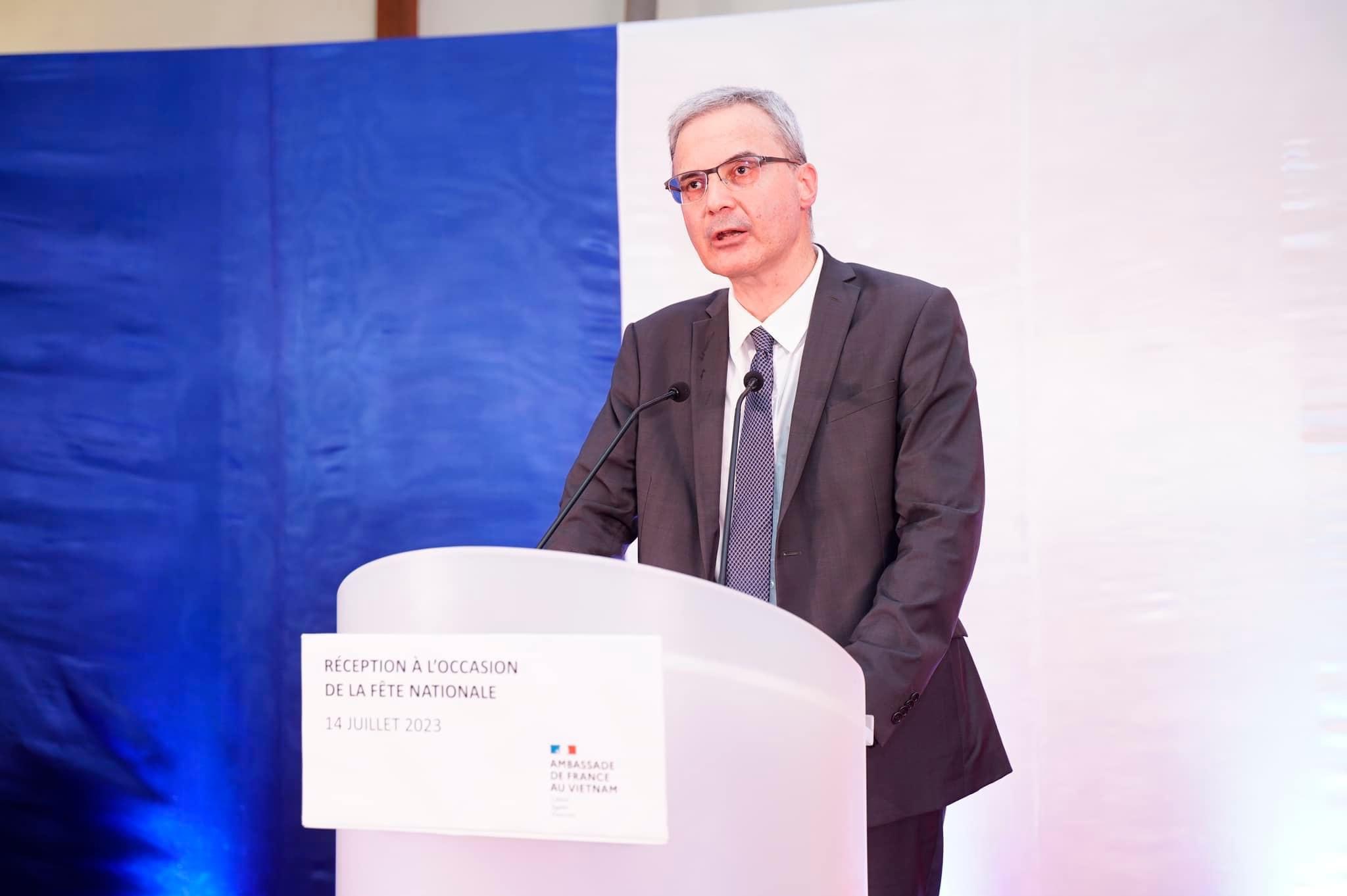 Thứ trưởng cho biết, Lễ kỷ niệm Quốc khánh Pháp năm nay có nhiều ý nghĩa đặc biệt khi cả hai nước kỷ niệm 50 năm thiết lập quan hệ ngoại giao và 10 năm đối tác chiến lược. Sau nửa thế kỷ, hai nước có được các bước chuyển mình quan trọng trong quan hệ ngoại giao. Trên con đường phát triển và hội nhập quốc tế của Việt Nam, Pháp luôn là một trong những đối tác quan trọng hàng đầu đối với Việt Nam trong Liên minh châu Âu. Trong khi đó, Việt Nam là đầu cầu, cửa ngõ của Pháp vào khu vực Đông Nam Á.