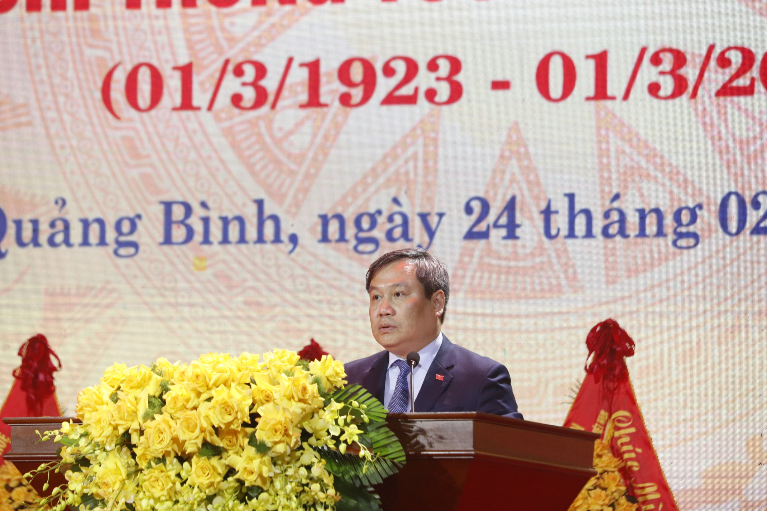 | Đồng chí Vũ Đại Thắng, Ủy viên Trung ương Đảng, Bí thư Tỉnh ủy Quảng Bình phát biểu tại Lễ kỷ niệm |