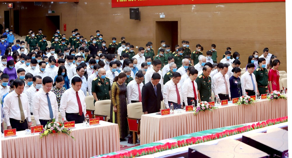 | Các đại biểu dành một phút tưởng niệm trước sự hy sinh cao cả của các bậc tiền nhân, các anh hùng liệt sỹ Xô viết Nghệ -Tĩnh. |