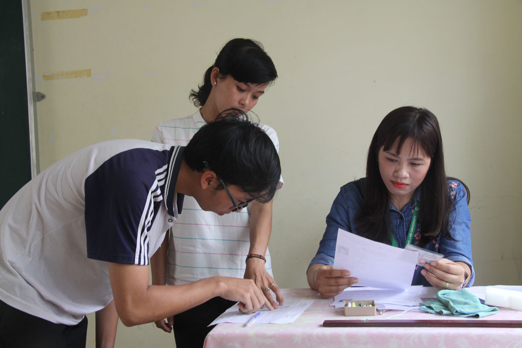 Tại buổi làm thủ tục dự thi, TS được phổ biến quy chế thi, lịch thi và kịp thời đính chính những sai sót (nếu có). Cán bộ coi thi cũng lưu ý về những trường hợp TS hay mắc lỗi, sự cố gặp phải trong quá trình thi để tránh vi phạm quy chế trong khi thi.