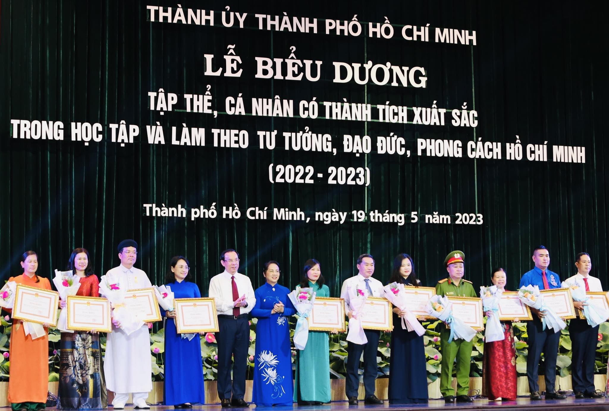 Ngày 19/5, Thành ủy TP Hồ Chí Minh tổ chức Lễ biểu dương 118 tập thể và 184 cá nhân có thành tích xuất sắc trong học tập và làm theo tư tưởng, đạo đức, phong cách Hồ Chí Minh năm 2022 - 2023.