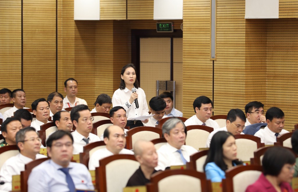 | Chủ tịch UBND quận Hà Đông Cấn Thị Việt Hà trả lời chất vấn. |