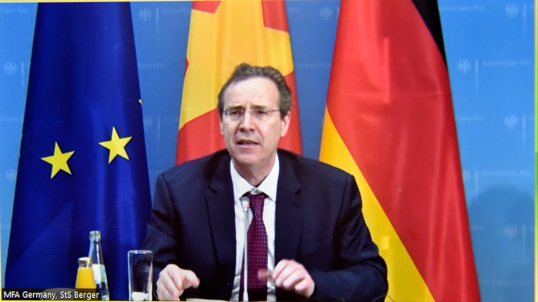 Tại cuộc họp, Thứ trưởng Tô Anh Dũng đã thông báo về định hướng và chính sách đối ngoại của Việt Nam sau Đại hội Đảng toàn quốc lần thứ 13, đánh giá cao vai trò và vị thế quan trọng của Đức ở châu Âu và trên thế giới, khẳng định Việt Nam mong muốn củng cố, phát triển sâu rộng hơn nữa mối quan hệ Đối tác chiến lược Việt - Đức. Quốc Vụ khanh Miguel Berger chúc mừng Việt Nam tổ chức thành công Đại hội Đảng lần thứ 13, ca ngợi nỗ lực của Việt Nam trong công tác phòng chống dịch COVID-19, khẳng định coi trọng vai trò của Việt Nam trong triển khai Định hướng chính sách Ấn Độ Dương - Thái Bình Dương được Chính phủ Đức thông qua vào tháng 9/2020.