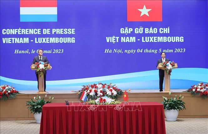 Trưa 4/5, tại Trụ sở Chính phủ, sau Lễ đón và hội đàm chính thức, Thủ tướng Chính phủ Phạm Minh Chính và Thủ tướng Đại Công quốc Luxembourg Xavier Bettel chứng kiến ký các văn kiện hợp tác và gặp gỡ báo chí để thông báo kết quả hội đàm giữa hai Thủ tướng.