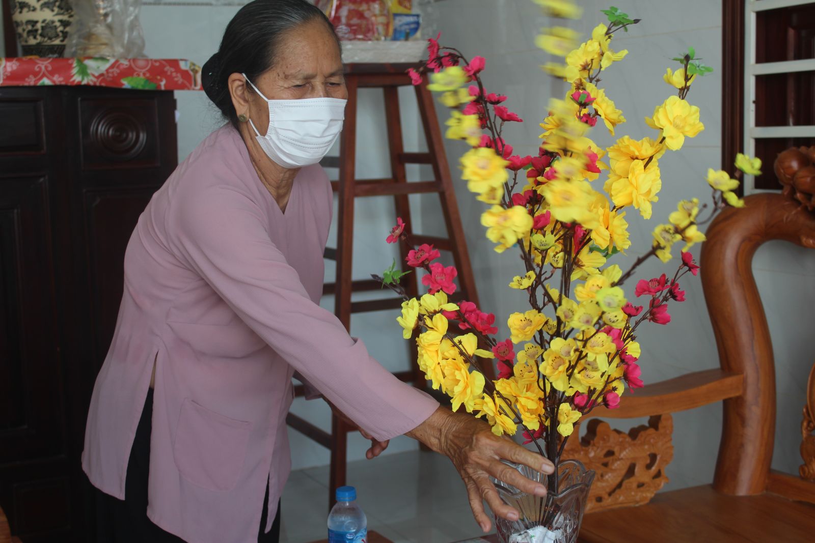 Bà Phạm Thị Hội vui mừng khi được chi trả trợ cấp người có công tại nhà