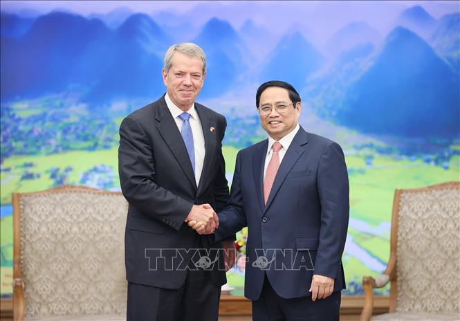 | Thủ tướng Phạm Minh Chính tiếp Thống đốc bang Nebraska (Hoa Kỳ) Jim Pillen (ảnh: Dương Giang/TTXVN) |
