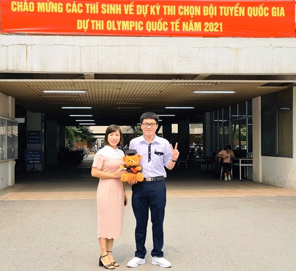 Em Đặng Lê Minh Khang và cô Hoàng Thị Lan Anh, Tổ trưởng Tổ Sinh học, phụ trách đội tuyển quốc gia (ảnh do Sở GD&ĐT Cần Thơ cung cấp).