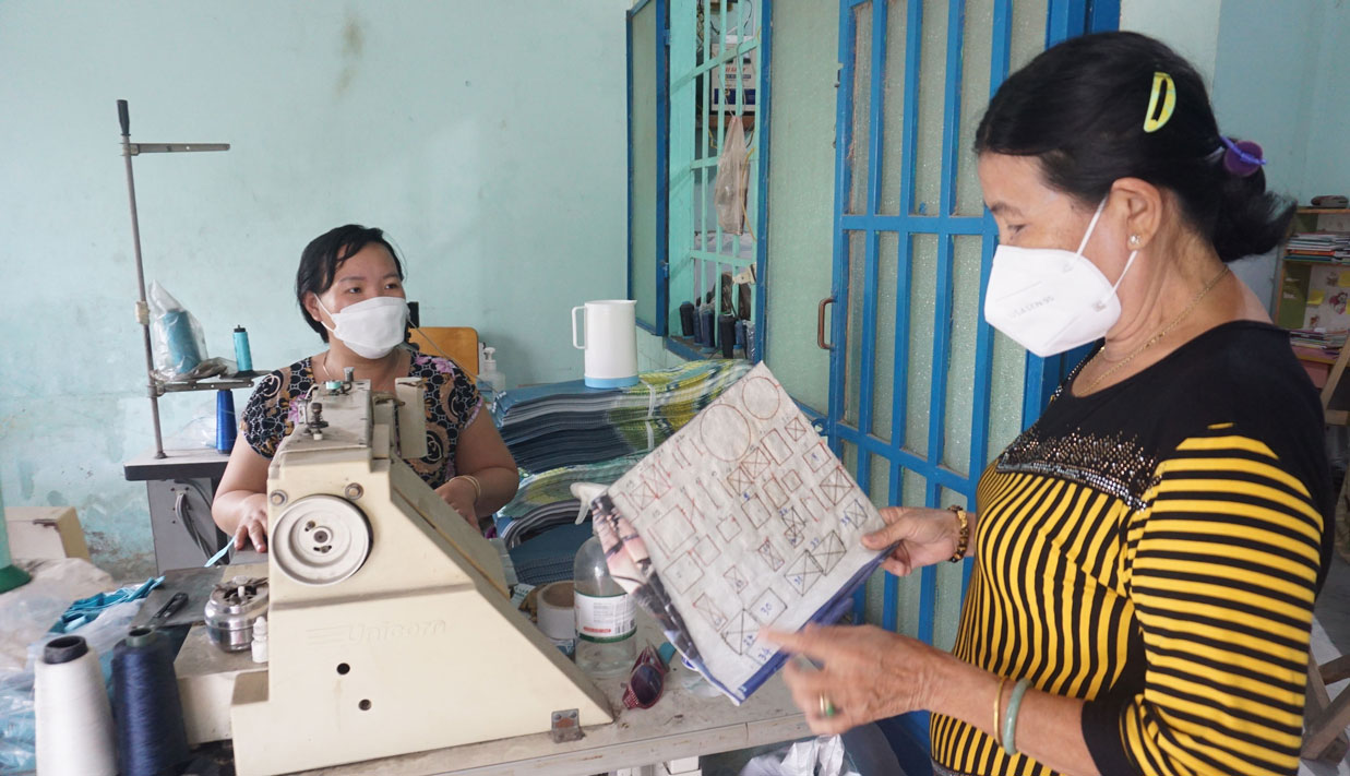 Năm 2013, sau khi có thêm đứa con thứ 2, chị Bích Hợp bận bịu việc chăm sóc các con nên không thể tiếp tục làm công nhân và đang loay hoay không biết làm gì để trang trải cuộc sống thì chị được một người quen giới thiệu nghề may gia công tại nhà. Thấy công việc khá phù hợp, ban đầu chị mua 1 máy may lập trình cũ trị giá khoảng 45 triệu đồng và nhận các sản phẩm từ TP.HCM về gia công, trung bình thu nhập mỗi tháng hơn 6 triệu đồng. Tuy nhiên, có những lúc cao điểm, đơn hàng nhiều không làm kịp, vì vậy chị mạnh dạn mua thêm 1 máy may nữa để chồng phụ lúc rảnh rỗi. Trung bình mỗi tháng, vợ chồng chị nhận đánh quai từ 2.000-3.000 sản phẩm túi xách các loại, thu nhập từ 12-16 triệu đồng/tháng, vươn lên ổn định cuộc sống.
