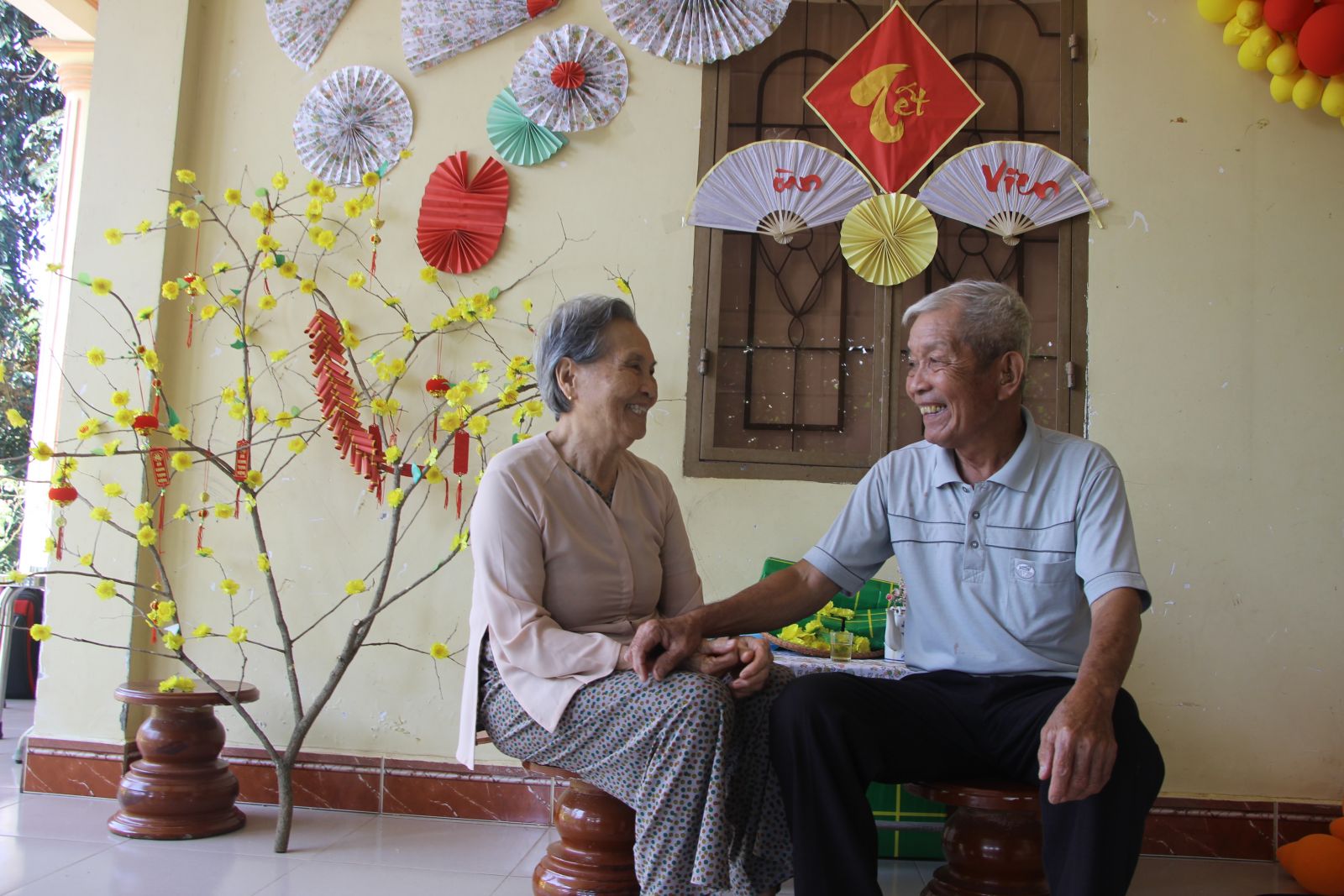 Vợ chồng ông Lê Hồng Đơn và bà Trần Thị Thuận (ấp Hoàng Mai, xã Hậu Thạnh Đông, huyện Tân Thạnh, tỉnh Long An) năm nay đã gần 80 tuổi nhưng vẫn rất tình cảm. Thấy bà từ nhà sau đang chậm rãi bước lên, ông gọi: “Lại đây ngồi nè em”.