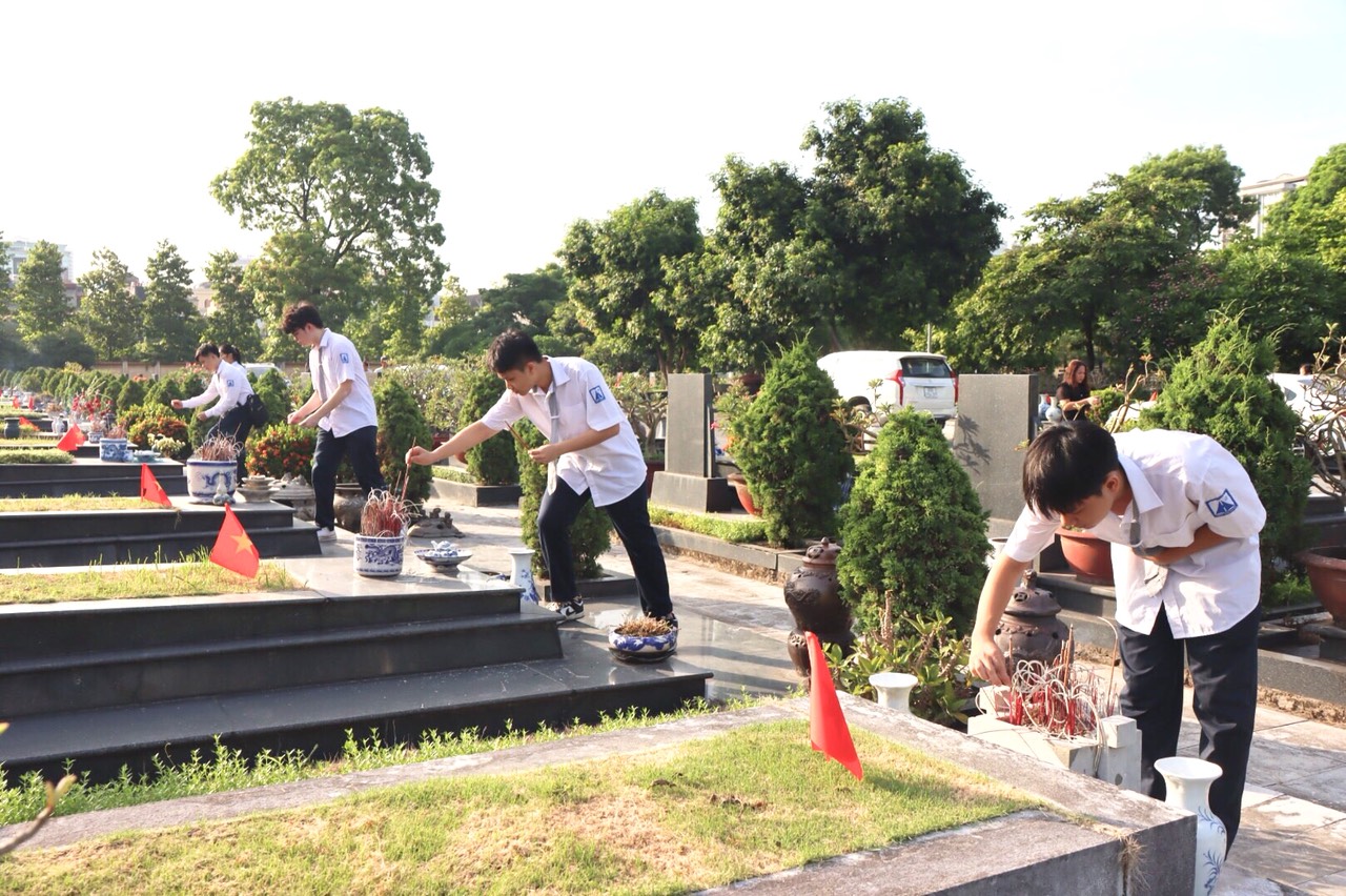 Nhân dịp kỷ niệm 76 năm Ngày Thương binh - Liệt sĩ 27/7, hưởng ứng hoạt động “Đền ơn đáp nghĩa”, sáng 27/7, cùng với nhiều trường học trên địa bàn Thủ đô, các đảng viên mới và đoàn viên ưu tú của Trường THPT chuyên Hà Nội – Amsterdam đã đến dâng hương, tưởng niệm các Anh hùng liệt sỹ tại Đài tưởng niệm Tổ quốc ghi công tại Nghĩa trang Mai Dịch (Hà Nội).