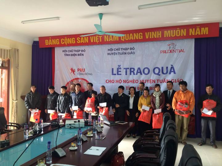 | Hội Chữ thập đỏ tỉnh Điện Biên phối hợp trao tặng quà cho các hộ nghèo tại huyện Tuần Giáo . (Ảnh: ĐP ) |