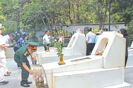 Cái nắng rát da miền Trung không làm cho đoàn người viếng bia, mộ những thanh niên xung phong ở ngã ba Đồng Lộc chùn bước. Dòng người lặng lẽ thắp những nén nhang lên phần mộ các chị. Và giữa cái nóng đến “ngặt người” những người lính đang khoát trên mình bộ quân phục, cảnh phục đứng nghiêm trang, chào theo điều lệnh trước mỗi nấm mồ các nữ anh hùng. Một hành động nhỏ thôi, để tỏ lòng biết ơn, để thấy được nét đẹp và sự tiếp nối truyền thống cách mạng của những người khoác trên mình sắc phục quân đội. Bác nông dân Trần Văn Thơ (ấp 7 mét, xã Kiến Bình, huyện Tân Thạnh) đứng bên gốc cây vệ đường nhìn vào làn khói hương nghi ngút bên hàng bia mộ, bác nói: “Đi để biết, để về nhà ráng làm thêm nhiều điều có ích”.