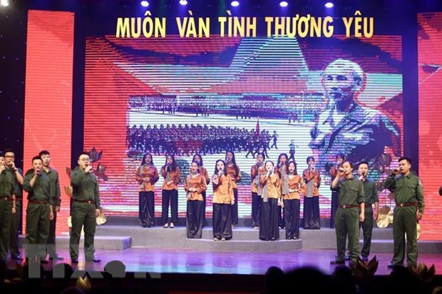 Chương trình nghệ thuật tại điểm cầu Hà Nội. (Ảnh: Minh Quyết/TTXVN)