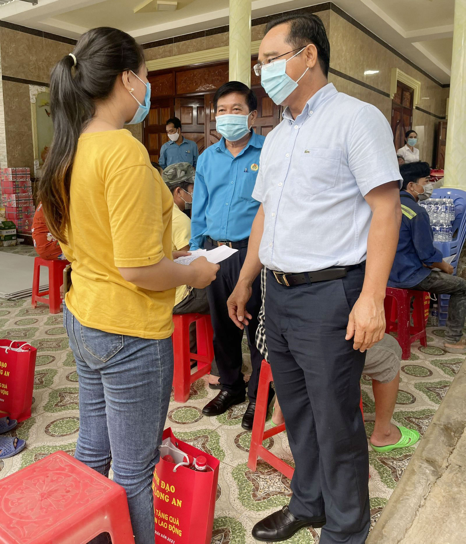 Bí thư Tỉnh ủy, Chủ tịch HĐND tỉnh - Nguyễn Văn Được (bìa phải) thăm hỏi, tặng quà cho công nhân, lao động