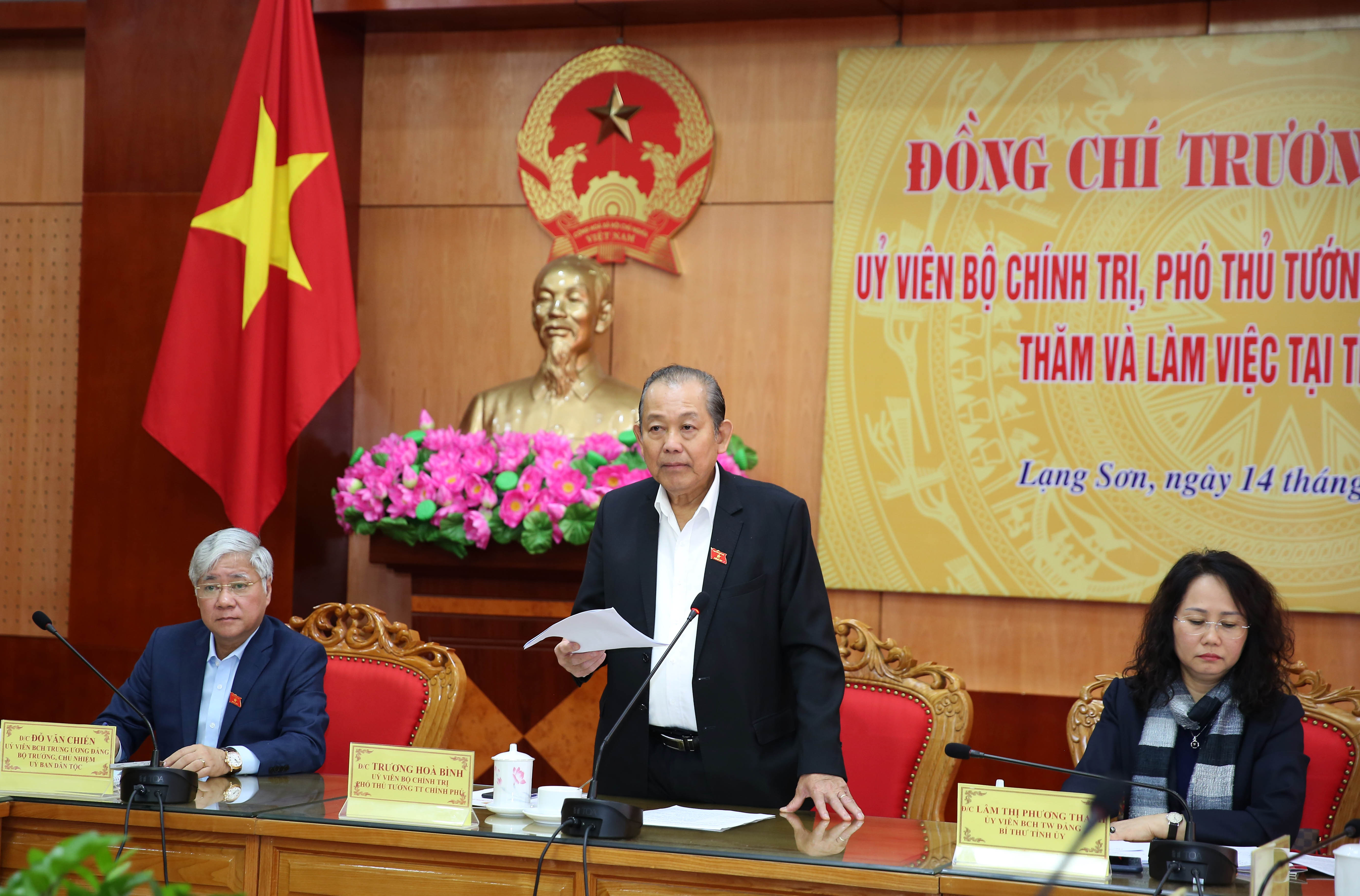 Phát biểu tại cuộc làm việc, Phó Thủ tướng Thường trực Chính phủ Trương Hoà Bình nêu rõ: Nhiệm kỳ vừa qua tỉnh Lạng Sơn đã nỗ lực phấn đấu vượt qua khó khăn, thách thức, khai thác tối đa các tiềm năng, lợi thế, đổi mới, sáng tạo, huy động các nguồn lực để đầu tư phát triển, đạt được nhiều kết quả quan trọng, khá toàn diện trên các lĩnh vực, hoàn thành và vượt kế hoạch đề ra 20 chỉ tiêu chủ yếu, trong đó vượt 18 chỉ tiêu là thành tựu quan trọng tạo tiền đề cho tỉnh phát triển giai đoạn tới và đóng góp vào kết quả tích cực của cả nước.