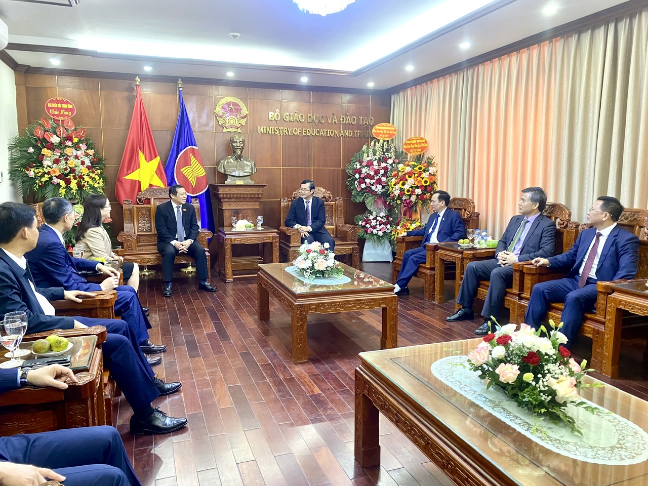 | Đồng chí Lại Xuân Môn, Ủy viên Trung ương Đảng, Phó trưởng Ban Thường trực Ban Tuyên giáo Trung ương làm Trưởng đoàn đến chúc mừng Bộ GD&ĐT nhân kỷ niệm 41 năm Ngày Nhà giáo Việt Nam. |