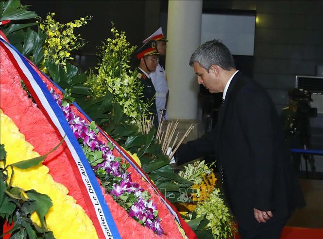 * Các đoàn đại biểu nước ngoài, cơ quan lãnh sự, cơ quan đại diện của các tổ chức quốc tế tại Thành phố Hồ Chí Minh đã đến viếng và ghi sổ tang nguyên Chủ tịch nước, Đại tướng Lê Đức Anh tại Hội trường Thống nhất, Thành phố Hồ Chí Minh./.
