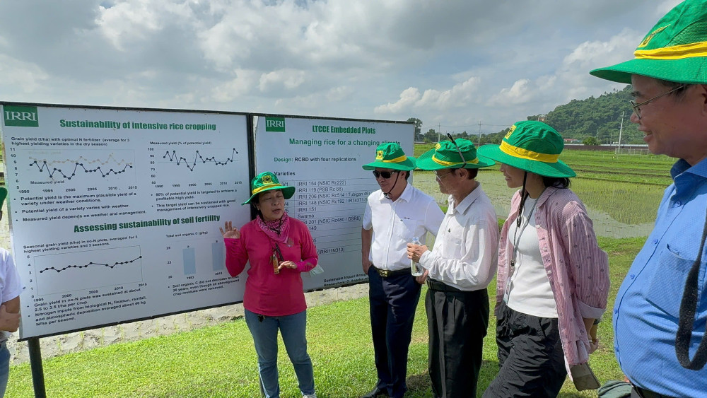 Đoàn công tác Công ty Cổ phần Phân bón Bình Điền tham quan mô hình ruộng lúa chất lượng cao tại khu thực nghiệm của IRRI