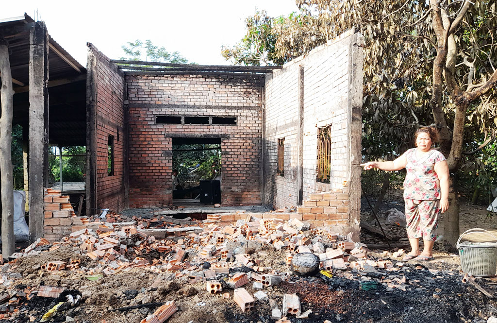 Căn nhà bị cháy nằm sâu trong đồng ruộng, rất thưa dân cư, đây cũng là nhà tình thương được chính quyền địa phương trao tặng cho gia đình anh Hiền cách đây khoảng 10 năm. Nhờ nỗ lực, cố gắng làm ăn, gia đình anh dần vượt qua khó khăn, ổn định cuộc sống và đã thoát cận nghèo được 2 năm. Tuy nhiên, hỏa hoạn lại bất ngờ ập đến, bao nhiêu vốn liếng tích góp dành dụm, cùng tài sản trong nhà đều bị lửa thiêu rụi hoàn toàn. Thời điểm xảy ra vụ cháy, vợ chồng anh đi làm không có nhà, chỉ có một đứa con bị khờ khờ. Lúc nhà cháy, đứa nhỏ chẳng biết làm sao nên chạy bộ đi tìm ba mẹ về. Ước tính thiệt hại gần 150 triệu đồng sau vụ cháy, rất may không có ai bị thương tích. Nguyên nhân ban đầu được xác định là do chập điện.