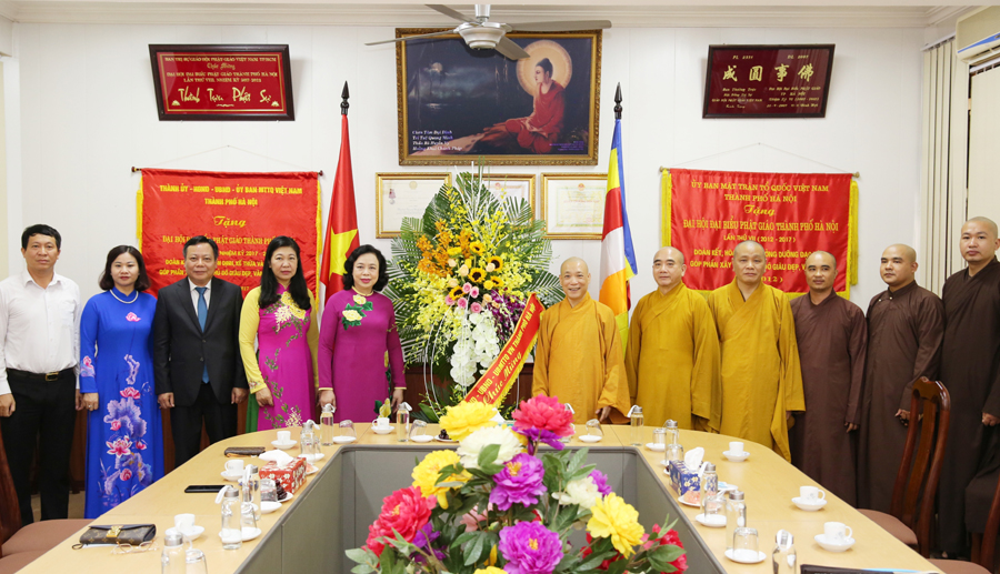 | Phó Bí thư Thành ủy Hà Nội Ngô Thị Thanh Hằng chúc mừng Ban Trị sự Giáo hội Phật giáo Việt Nam thành phố Hà Nội. |