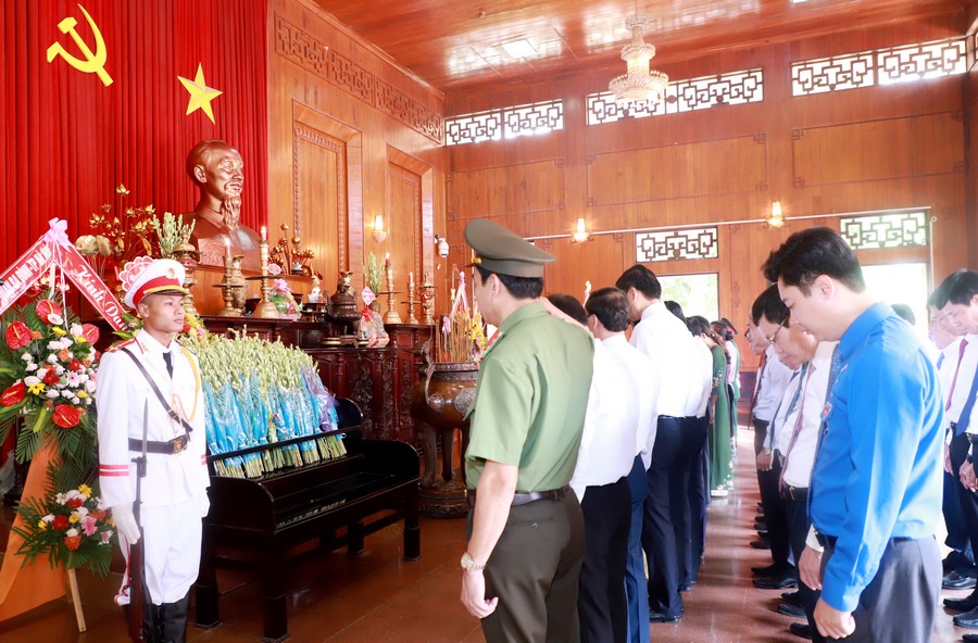 Trong không khí thiêng liêng, thành kính, Đoàn đại biểu dâng hoa, dâng hương tưởng niệm, bày tỏ lòng biết ơn vô hạn và lòng kính trọng sâu sắc đối với Chủ tịch Hồ Chí Minh - lãnh tụ vĩ đại của Đảng, Nhân dân Việt Nam, Anh hùng giải phóng dân tộc, danh nhân văn hoá kiệt xuất.
