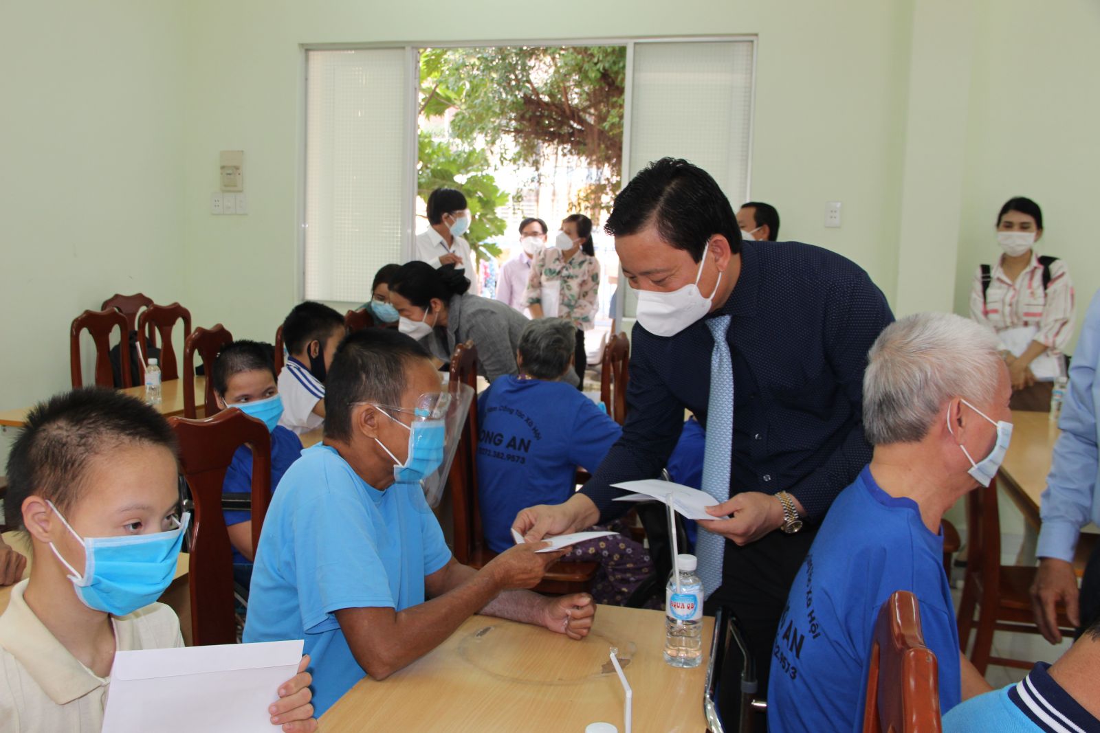 Phó Chủ tịch UBND tỉnh - Phạm Tấn Hòa tặng quà cho các đối tượng bảo trợ xã hội tại Trung tâm Công tác xã hội tỉnh