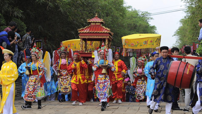 Nghi lễ rước kiệu tại Đền thờ Hùng Vương ở công viên Văn hóa Lịch sử quận 9 (Ảnh: Báo Tuổi trẻ)