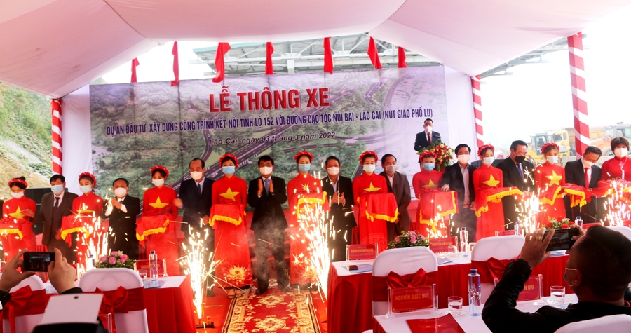 Cũng trong sang 3/3, UBND tỉnh Lào Cai đã tổ chức Lễ thông xe Dự án đầu tư xây dựng công trình kết nối Tỉnh lộ 152 với cao tốc Nội Bài – Lào Cai.
