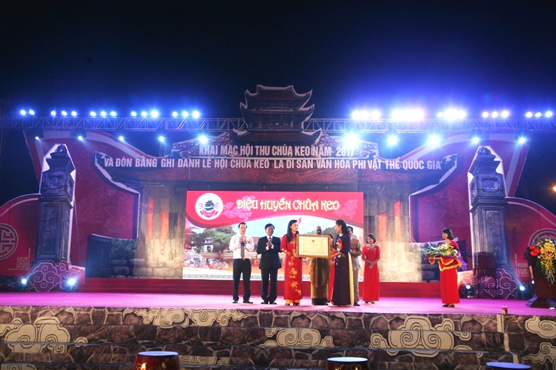 Tại buổi lễ, Thứ trưởng Bộ Văn hóa, Thể thao và Du lịch Đặng Thị Bích Liên đã trao bằng ghi danh lễ hội chùa Keo là “Di sản văn hóa phi vật thể quốc gia” cho đại diện chính quyền và nhân dân địa phương.