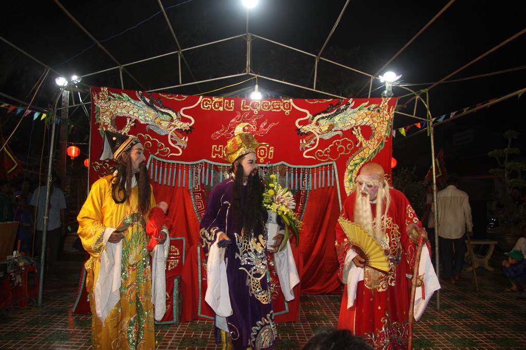 Nằm trong chuỗi hoạt động của Lễ hội Làm Chay, đêm nay, Câu lạc bộ Hát bội tỉnh Long An tham gia diễn vở tuồng Thần nữ dâng ngũ linh kỳ tại Đình Tân Xuân. Vở diễn thu hút khá nhiều khán giả đến xem.