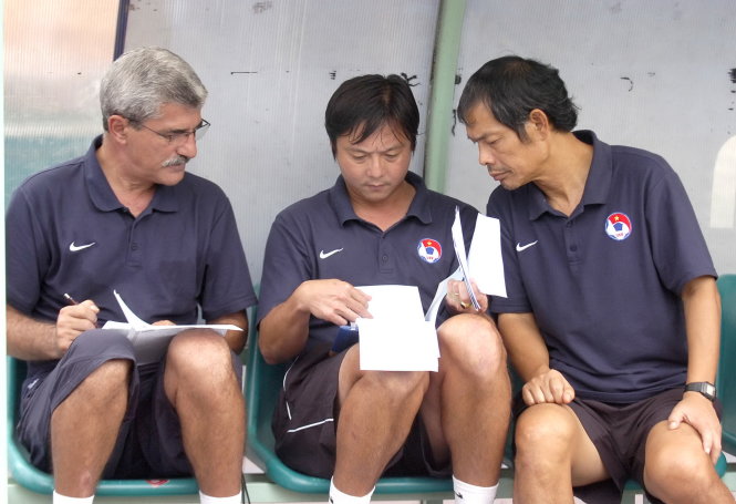 Lê Huỳnh Đức (giữa) khi còn là trợ lý cho HLV Calisto - Ảnh: S.H.