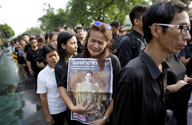 Dưới cái nắng gay gắt, họ xếp hàng từ cửa Cung điện Hoàng gia tới đầu cầu Pink Klao dài cả cây số. Từng nhóm người sau đó lần lượt được đưa vào sảnh Sala Sahathai Samakhom, nơi đặt di ảnh của Nhà Vua Bhumibol để quỳ lạy và ký sổ tang, bày tỏ lòng tiếc thương với nhà vua. Cho tới sáng nay, dù có mưa nhẹ người dân vẫn đổ về Hoàng cung và xếp hàng dưới mưa.