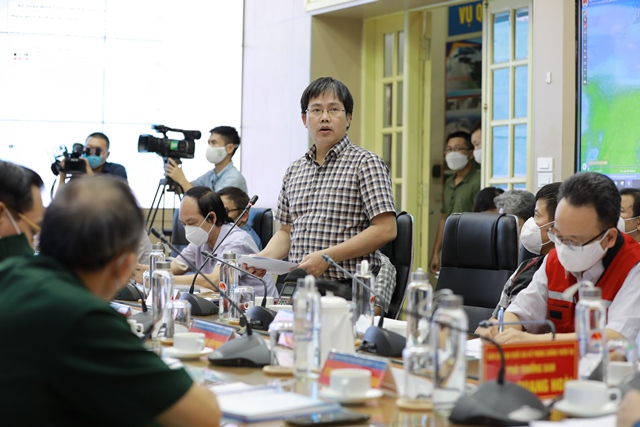 | Ông Mai Văn Khiêm - Giám đốc Trung tâm dự báo khí tượng thủy văn Quốc gia phát biểu tại cuộc họp (Ảnh: NH) |