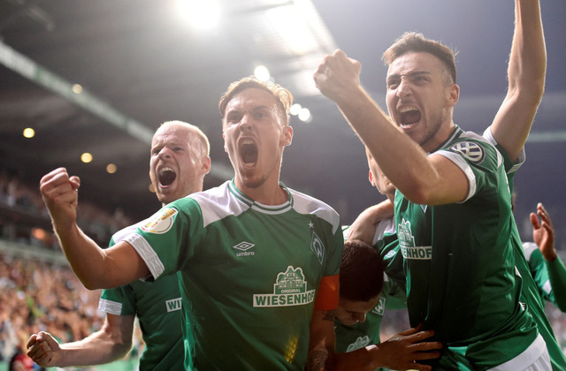Niềm vui của các cầu thủ Werder Bremen sau khi gỡ hòa 2-2 - Ảnh: Reuters