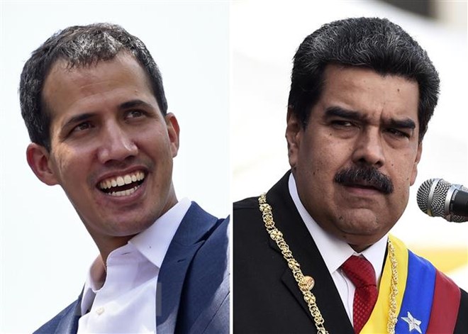 Tổng thống Venezuela Nicolas Maduro (phải) và thủ lĩnh đối lập Juan Guaido tự phong là Tổng thống lâm thời. (Nguồn: AFP/TTXVN)