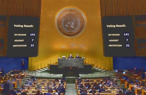 Theo phóng viên TTXVN tại New York, tại phiên họp đặc biệt lần thứ 11, Đại hội đồng đã nhất trí thông qua nghị quyết không mang tính ràng buộc pháp lý nói trên nhằm kêu gọi chấm dứt cuộc xung đột Nga-Ukraine.