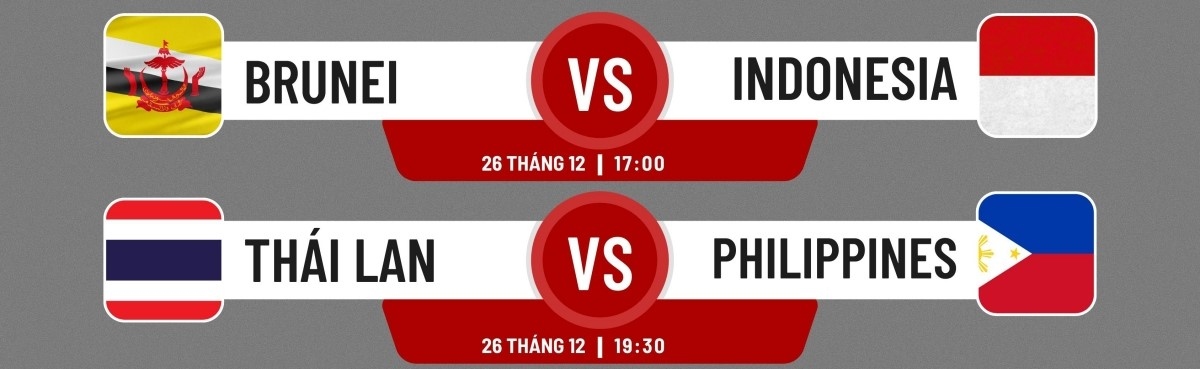 Chiều và tối 26/12, lượt trận thứ 3 bảng A - AFF Cup 2022 sẽ diễn ra. Trên sân nhà Thammasat ở Pathum Thani, ĐKVĐ Thái Lan sẽ có cuộc đọ sức với đối thủ Philippines, trong khi Indonesia sẽ đến làm khách của Brunei.