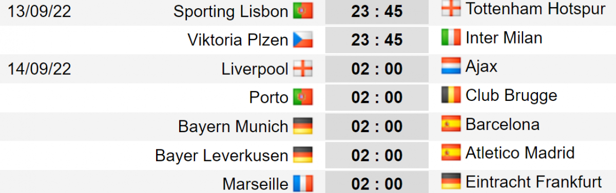 Đêm nay (13/9), rạng sáng mai (14/9), Cúp C1 châu Âu 2022/2023 sẽ tiếp tục diễn ra lượt trận thứ 2. Trong loạt trận hôm nay, trận cầu được chú ý nhất sẽ diễn ra giữa Bayern Munich và Barca tại Allianz Arena.