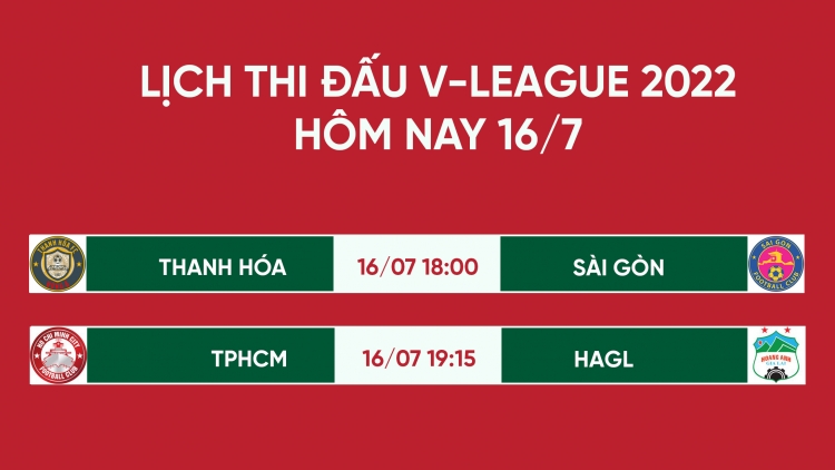Theo lịch thi đấu V-League 2022 hô nay 16/7, người hâm mộ sẽ hướng sự chú ý của mình đến 2 trận đấu muộn vòng 7 V-League 2022. Đó là cuộc so tài của Thanh Hóa vs Sài Gòn FC và TPHCM vs HAGL.