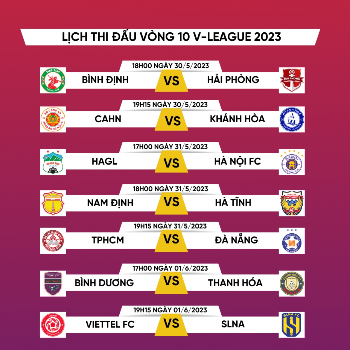 Trong ngày 31/5 sẽ diễn ra 3 trận đấu của vòng 10 V-League 2023.