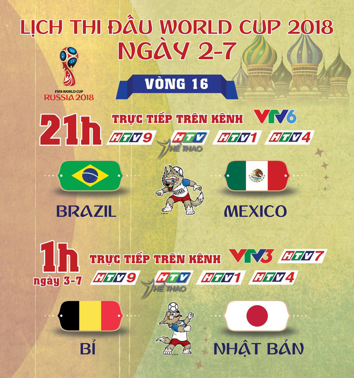 Theo lịch thi đấu, lúc 21h, trên VTV6, HTV9, HTV Thể thao, HTV1, HTV4 sẽ diễn ra trận so tài đỉnh cao giữa Brazil (nhất bảng E) và Mexico (nhì bảng F). Dù đã thắng Đức ở vòng bảng nhưng rõ ràng Mexico nằm cửa dưới so với Brazil. Selecao hầu như rất ít gặp khó khăn khi gặp các đội bóng tầm dưới ở khu vực châu Mỹ.