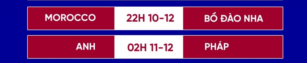 Theo lịch thi đấu World Cup 2022 hôm nay 10/12 và rạng sáng 11/12, người hâm mộ bóng đá trên toàn thế giới sẽ được chứng kiến 2 trận tứ kết cuối cùng của World Cup 2022.