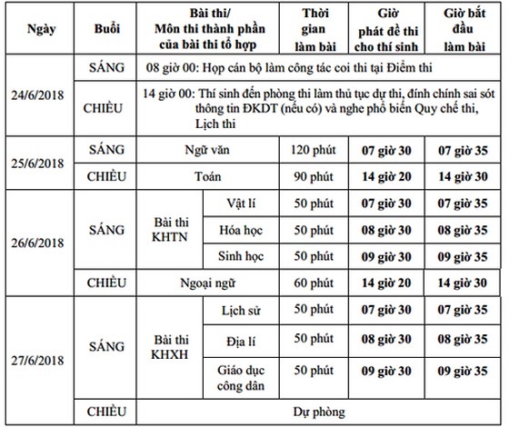 Lịch thi THPT quốc gia năm 2018 từ 25 đến 27-6