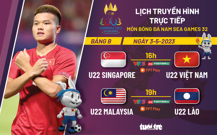 Lịch trực tiếp U22 Việt Nam - U22 Singapore môn bóng đá nam SEA Games 32 - Đồ họa: AN BÌNH